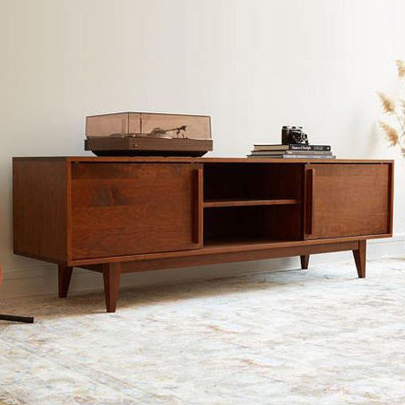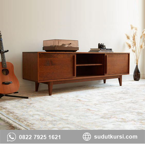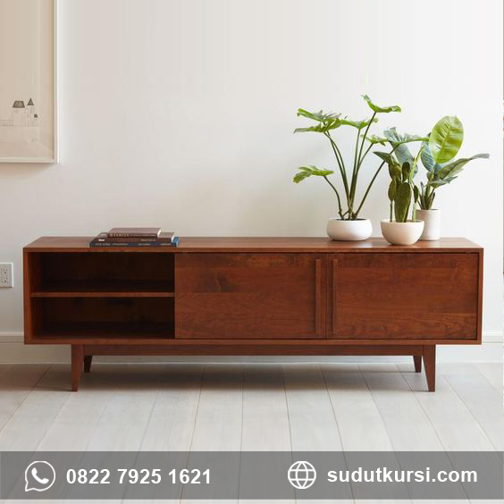 - Bufet jati bergaya minimalis dan kompatibel.