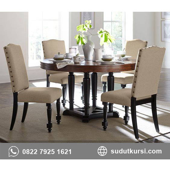 Produk set kursi meja makan mewah terbaru ini memiliki gaya modern minimalis dengan struktur konstruksi yang kuat terbuat dari bahan kayu jati dan busa kualitas terbaik. Ukuran meja diameter 100 x 100 x 70 cm, kerangka kokoh dan tahan lama, warna finishing natural salak M dan dark T dan rekomendasi untuk kitchen set, ruang makan, cafe, dll.